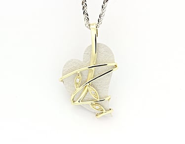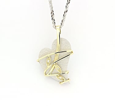 Z uporabo tradicionalnih in sodobnih zlatarskih tehnik nastane nekaj resnično izjemnega: srce iz belega zlata, nežno matirano, prepleteno z linijami toplega rumenega zlata, v katere so skrbno vdelani briljanti. Ti drobni dragulji simbolizirajo iskrice popolnosti, ki oživijo celoten kos in mu dodajo neponovljiv značaj.